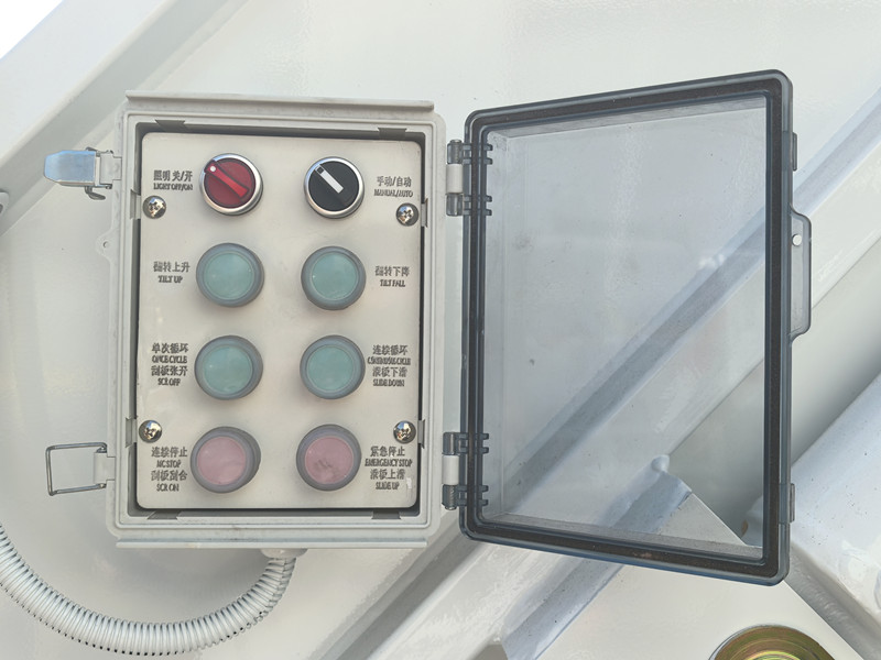 È presente un pulsante di arresto di emergenza per arrestare il compattatore di rifiuti in qualsiasi stato o posizione, garantendo la sicurezza sia degli operatori che dell'apparecchiatura.