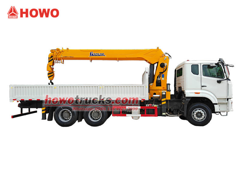 Il camion di servizio HOWO con gru da 20 tonnellate è stato modificato sul telaio HOWO NX, con passo di 4600+1400 mm, pneumatici 12.00R20 in totale (11 pezzi), è equipaggiato con un motore WEICHAI WP10.380E22 da 380 CV e un cambio HW19710 a 10 velocità, con sterzo ZF8118. La parte superiore è costituita da un cassone di carico di 6500×2300×450 mm. È dotato di una gru da 20 tonnellate, azionabile tramite leve idrauliche manuali su entrambi i lati per controllare l'estensione e la retrazione degli stabilizzatori e la rotazione della gru.