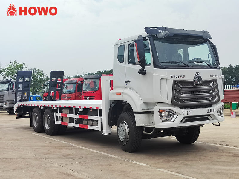 Il camion autocarro a pianale ribassato HOWO 6x4 per carichi pesanti è un veicolo specializzato progettato per il trasporto di macchinari e attrezzature di grandi dimensioni, veicoli da costruzione e carichi non smontabili. Il suo design a pianale ribassato offre un ampio spazio di carico e una notevole capacità di carico, soddisfacendo facilmente le esigenze di trasporto di macchinari edili come escavatori e bulldozer.