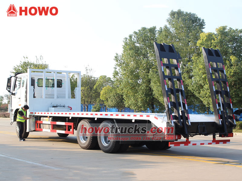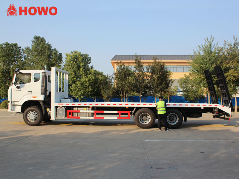 Il camion autocarro a pianale ribassato HOWO 6x4 per carichi pesanti è un veicolo specializzato progettato per il trasporto di macchinari e attrezzature di grandi dimensioni, veicoli da costruzione e carichi non smontabili. Il suo design a pianale ribassato offre un ampio spazio di carico e una notevole capacità di carico, soddisfacendo facilmente le esigenze di trasporto di macchinari edili come escavatori e bulldozer.La scala idraulica del veicolo rende le operazioni di carico e scarico comode e sicure, migliorando l'efficienza operativa. Autocarro semovente HOWO per carichi pesanti con pianale 6x4 Non solo è adatto per cantieri edili, attività minerarie e trasporto di attrezzature di grandi dimensioni, ma si distingue anche per il funzionamento stabile, la forte adattabilità e la facilità d'uso, che lo rendono uno strumento di trasporto fondamentale per l'edilizia e il trasferimento di attrezzature.  La caratteristica principale del pianale del camion semirimorchio Howo è la possibilità di regolarne manualmente la larghezza. Le dimensioni standard del pianale sono di 7800 mm di lunghezza e 2500 mm di larghezza, ma grazie all'avanzato meccanismo telescopico, la larghezza può essere estesa fino a un massimo di 3,2 metri, migliorando significativamente la flessibilità di carico e l'adattabilità al tipo di merce. Per agevolare le operazioni di carico, scarico e fissaggio del carico, sul pianale è installato un verricello che consente di trainare e fissare facilmente il carico, garantendo sicurezza e stabilità durante il trasporto. Inoltre, il materiale e il processo di fabbricazione del pianale sono accuratamente selezionati e rigorosamente controllati per assicurarne la durata nel tempo.  1. Struttura razionale e elevata capacità di caricoIl camion semirimorchio Howo 6x4 con pianale ribassato presenta un design a basso profilo con un ampio pianale di carico ad un'altezza adeguata, riducendo efficacemente le pendenze di carico e scarico e facilitando le operazioni di carico e scarico di macchinari edili e attrezzature di grandi dimensioni. Il robusto telaio e la notevole capacità di carico del veicolo soddisfano facilmente le esigenze di trasporto di macchinari pesanti come escavatori, bulldozer e rulli compressori. Inoltre, il pianale è rinforzato e trattato con un rivestimento antiscivolo, migliorando sia la capacità di carico che la stabilità e la sicurezza durante il trasporto.  2. Carico e scarico agevoli, funzionamento sempliceIl camion a pianale per carichi pesanti HOWO è dotato di una scala idraulica che consente un rapido carico e scarico delle attrezzature, riducendo i costi di manodopera e di tempo. L'operatore può controllare l'altezza e l'inclinazione della scala con semplici comandi, rendendo l'intera operazione più efficiente e sicura. Il sistema operativo intuitivo e la flessibilità di utilizzo facilitano le operazioni di trasporto in diverse condizioni di lavoro, migliorando efficacemente l'efficienza complessiva del cantiere.  3. Forte adattabilità, sicurezza e affidabilitàI dumper autocarri a pianale ribassato HOWO per carichi pesanti non sono adatti solo alle strade urbane e al trasporto nei cantieri edili, ma operano in modo affidabile anche in miniere, aree rurali e su strade complesse. Costruiti con acciaio ad alta resistenza e tecniche di saldatura avanzate, questi dumper offrono eccellente durata e stabilità, garantendo prestazioni ottimali anche durante operazioni prolungate e ad alta intensità.