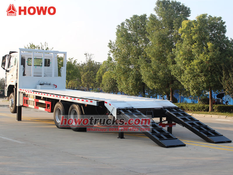 La scala idraulica del veicolo rende le operazioni di carico e scarico comode e sicure, migliorando l'efficienza operativa. Autocarro semovente HOWO per carichi pesanti con pianale 6x4 Non solo è adatto per cantieri edili, attività minerarie e trasporto di attrezzature di grandi dimensioni, ma si distingue anche per il funzionamento stabile, la forte adattabilità e la facilità d'uso, che lo rendono uno strumento di trasporto fondamentale per l'edilizia e il trasferimento di attrezzature.