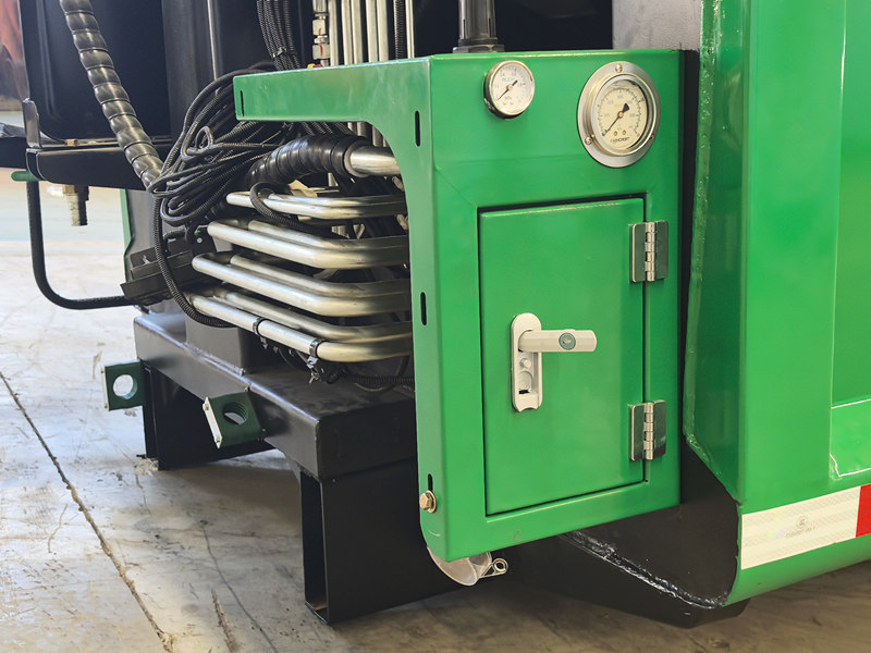 Il compattatore posteriore da 10 m³ è il sistema operativo principale del veicolo, costituito principalmente da un vano rifiuti sigillato, un dispositivo di compressione e un meccanismo di carico. La struttura robusta e durevole e l'eccellente tenuta impediscono perdite di acque reflue e odori. Durante il funzionamento, dopo che la tramoggia di carico ha ricevuto i rifiuti, un raschiatore azionato idraulicamente li spinge all'interno del vano. Il dispositivo di compressione applica quindi pressione, compattando i rifiuti per ridurne il volume e aumentare la capacità di carico. La capacità di carico superiore è di 12 metri cubi e supporta diverse modalità di carico e scarico per soddisfare le più svariate esigenze operative.