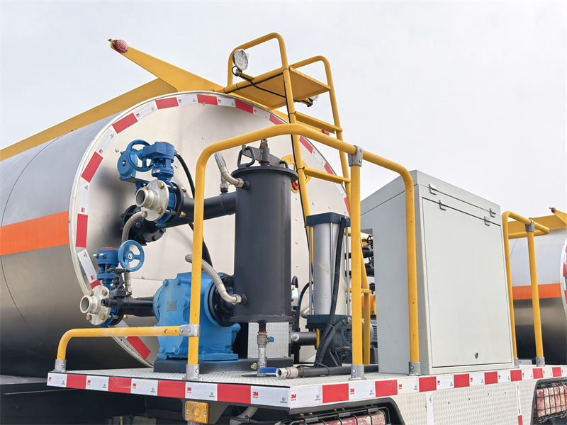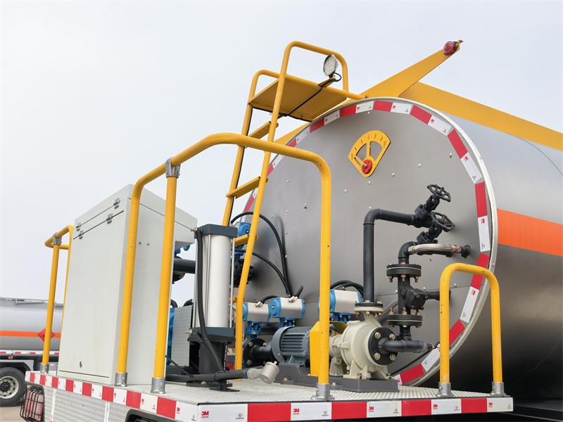 • Materiale: Il corpo della cisterna per asfalto è isolato con uno strato isolante in silicato di alluminio dello spessore di 50 mm e rivestito esternamente con una piastra in acciaio inossidabile;