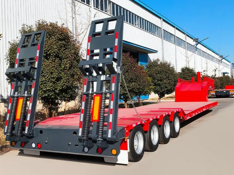 Nostro Rimorchio ribassato a 4 assi da 80 tonnellate Incorpora un collo d'oca staccabile e un design a centro ribassato, equipaggiato con quattro assali Fuwa da 13 tonnellate e un sistema di sospensioni a balestra rinforzata a 10 elementi. Questa combinazione offre una maggiore capacità di carico e un baricentro più basso. Le sospensioni ottimizzate migliorano significativamente la stabilità di guida, mentre la struttura modulare consente operazioni di carico e scarico rapide. È in grado di ospitare diverse tipologie di merci, migliorando l'efficienza complessiva del trasporto. I componenti standardizzati garantiscono compatibilità e facilità di manutenzione, e sono disponibili soluzioni altamente personalizzate per soddisfare le esigenze specifiche del cliente.