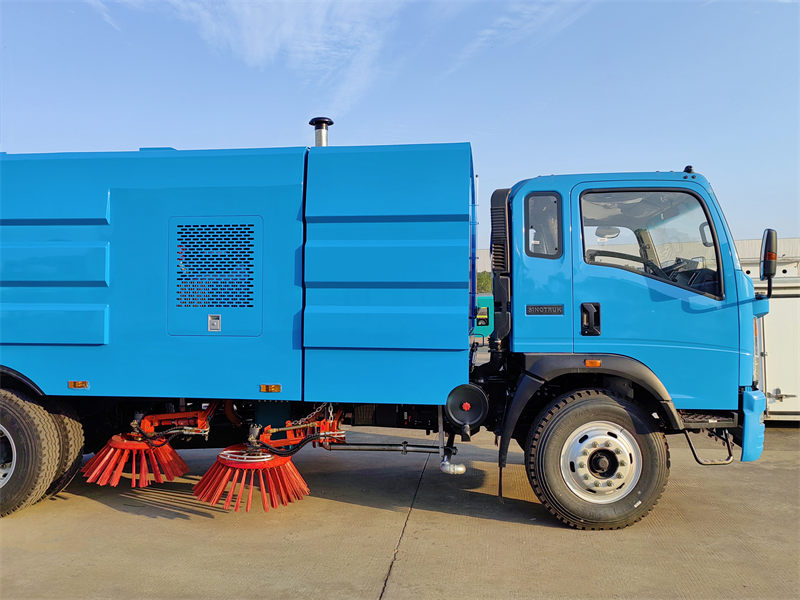7200IL Autospazzatrice stradale Howo 4x2 È una macchina dalle potenti prestazioni di spazzamento e dall'efficienza operativa, adatta alla pulizia di strade urbane, zone industriali ed edifici amministrativi. Il suo serbatoio di raccolta della polvere da 6 m³ e il serbatoio dell'acqua da 2 m³, combinati con una struttura di spazzamento in acciaio inox da 4 mm, garantiscono durata ed efficienza di pulizia. Dotata di un motore diesel da 160 CV e di una trasmissione WLY a 6 velocità, offre una guida potente e fluida.