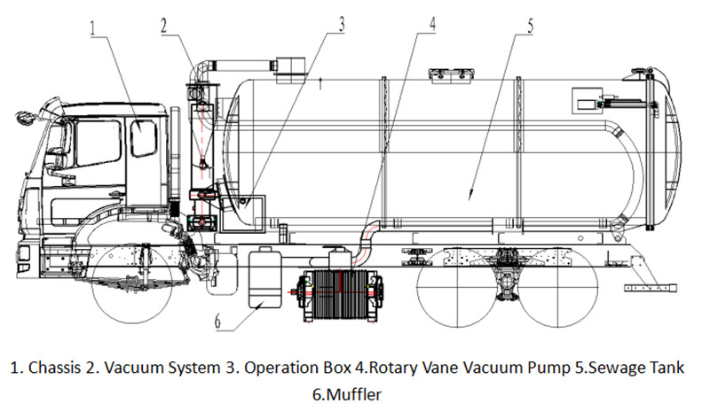 ● Utilizza una pompa a vuoto ad anello d'acqua tecnologicamente avanzata, che fornisce una forte aspirazione e un ampio raggio di aspirazione, risultando particolarmente adatta per il pompaggio, il trasporto e lo scarico di fanghi dalle fognature.