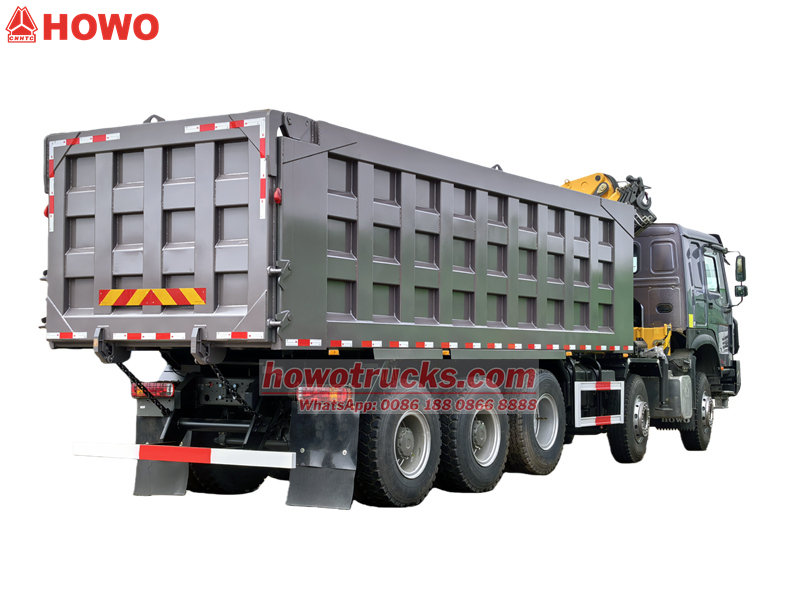 13000*3The Dumper da miniera Howo con gruè costruito sul Trazione pesante Howo 10x4telaio, dotato di WP12S400E201motore diesel e un HW19710 10-cambio a velocità. Ha una potenza elevata e può adattarsi a condizioni di lavoro complesse. È dotato la gru a nocche CS con una capacità di sollevamento massima di 8tonnellate.