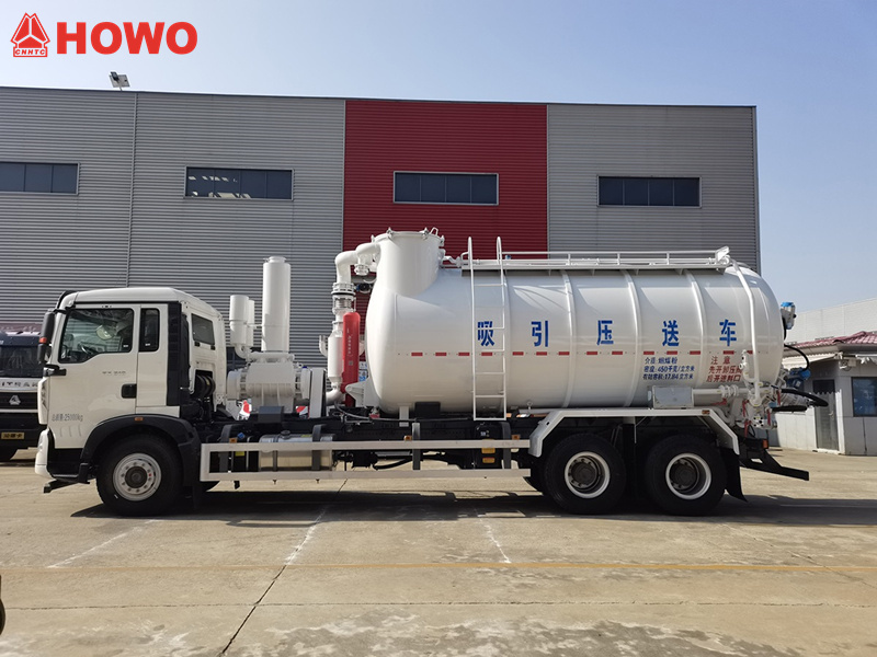 I carrelli trasportatori a pressione e aspirazione HOWO hanno due funzioni principali: aspirazione a pressione negativa e scarico a pressione positiva.