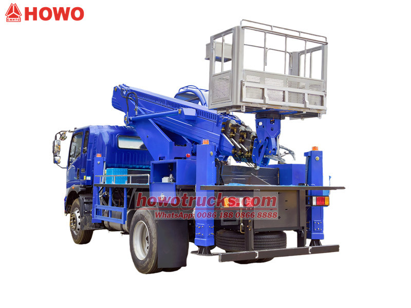 As a professional engineering vehicle, the Howo 18-meter articulated platform aerial truck is designed to combine reliable technical performance with comprehensive safety protection, making it suitable for various high-altitude operation scenarios. In terms of basic chassis and power configuration, the truck adopts the Howo all-wheel drive chassis, which lays a solid foundation for its flexible operation in complex road conditions. Equipped with an ISF3.8S3154 engine, it can output a maximum power of 154 horsepower.