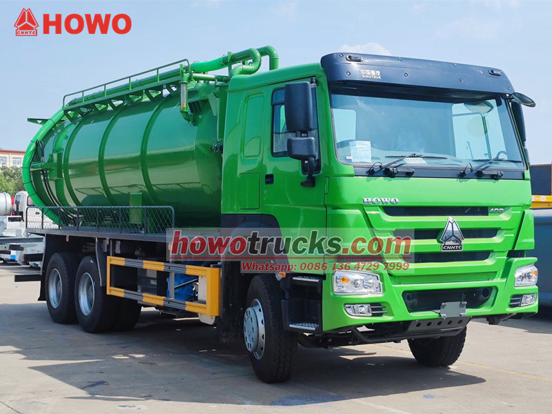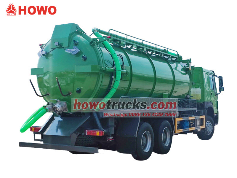 Jurop pump, 4×4, 6×6, RHD drive is optionalL'autocisterna per aspirazione fognature SINOTRUK HOWO è un veicolo professionale per la pulizia urbana, costruito sul telaio per impieghi gravosi HOWO 6x4 e funzionante secondo il principio della pressione negativa del vuoto. Viene utilizzato principalmente per aspirare e trasportare rifiuti liquidi come fanghi e feci da fognature, fosse settiche e canali di scolo, affrontando efficacemente le problematiche di inquinamento e pulizia nelle condotte sotterranee urbane e in vari tipi di fossi. I suoi componenti principali includono un'efficiente pompa per vuoto italiana MORO e un serbatoio per liquami di grande capacità, che offrono capacità di aspirazione a lunga distanza e una notevole profondità di aspirazione verticale.