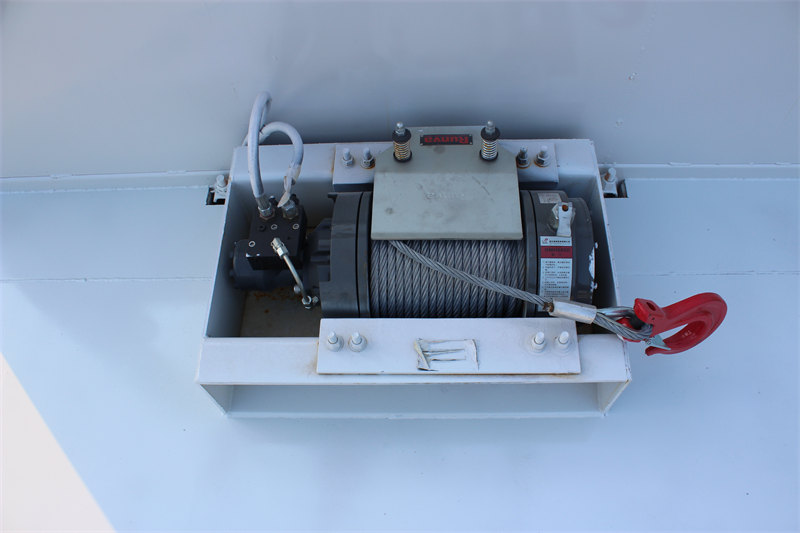 4. Carico e scarico automatici efficienti: È dotato di un verricello idraulico da 8 tonnellate, una rampa idraulica da 2 metri e un supporto idraulico anteriore da 25 tonnellate, che consentono il carico e lo scarico autonomo delle attrezzature senza dover ricorrere a macchinari aggiuntivi.
