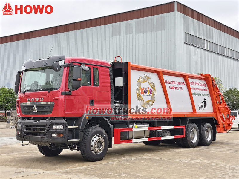 Autocarri compattatori per rifiuti HOWO da 20 m³ pronti per la spedizione in Africa.