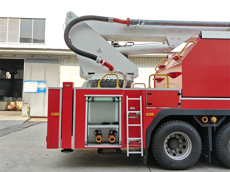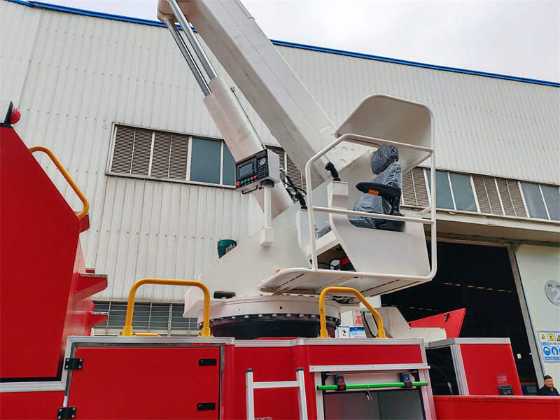 La parte girevole è dotata di un giunto girevole centrale che può raggiungere un angolo di rotazione infinito di 360 gradi. HL'autopompa Owo con torretta estensibile ad alto raggio è dotata di pompa antincendio ad alta portata e cannone antincendio. Il serbatoio dell'acqua e le tubazioni sono realizzati in acciaio inossidabile di alta qualità e tubi in lega di alluminio ad alta resistenza. Il sistema idraulico adotta una pompa ad alte prestazioni e una modalità di controllo proporzionale elettrolitico. Il sistema elettrico utilizza una tecnologia di comunicazione CAN bus collaudata e affidabile e un sistema di controllo centralizzato multipunto.