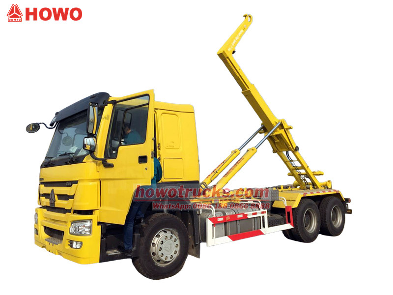 ♦ The Howo garbage hook lift truck has a rated load capacity of 30 tons and a garbage bin volume of up to 20 CBM