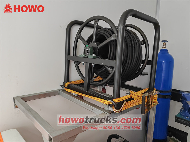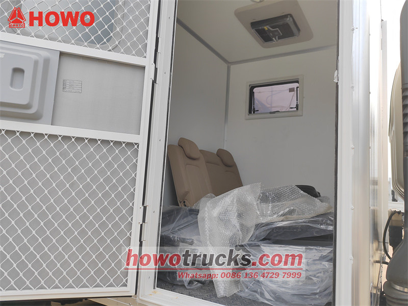 Il veicolo mobile di manutenzione d'emergenza HOWO 4x4 è basato sul telaio del camion leggero HOWO M3 1880. Ha un passo di 3000 mm ed è equipaggiato con un motore WP2.3Q140E62 da 140 CV e una trasmissione a 8 velocità WLY8GS46. La parte anteriore del veicolo è adibita a salotto con divano e sedie pieghevoli. Il vano posteriore è dotato di attrezzature per la manutenzione, tra cui un generatore diesel silenzioso giapponese Osawa Power, una pompa dell'acqua manuale portatile, una bombola di ossigeno, un banco da lavoro con quattro cassetti, due cassette degli attrezzi, una smerigliatrice da banco e una saldatrice idraulica a resistenza HDPE HDC315.