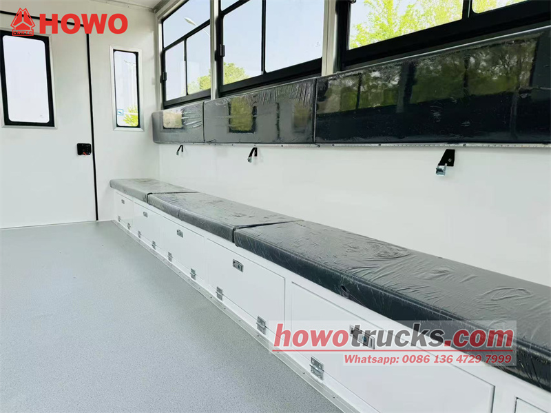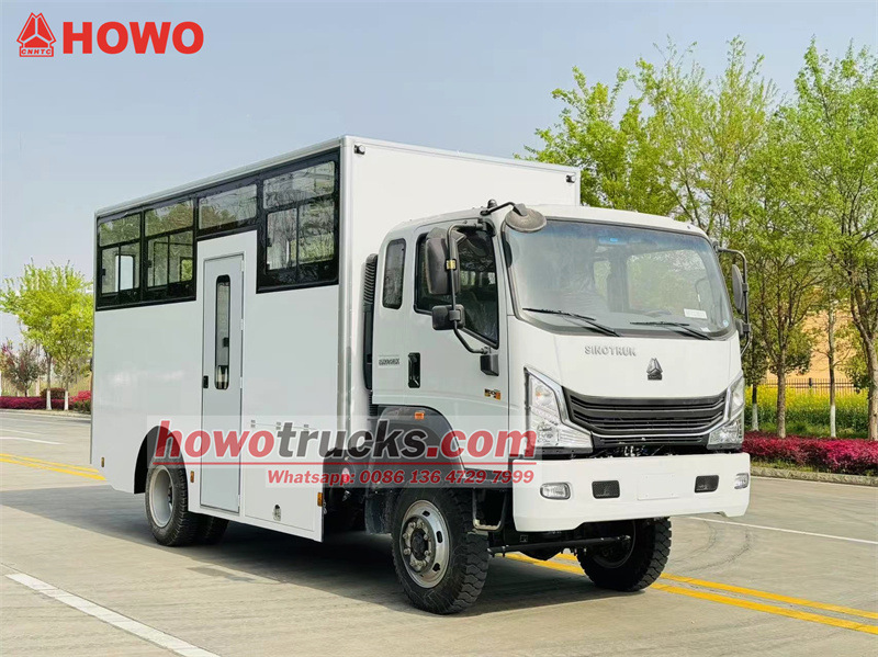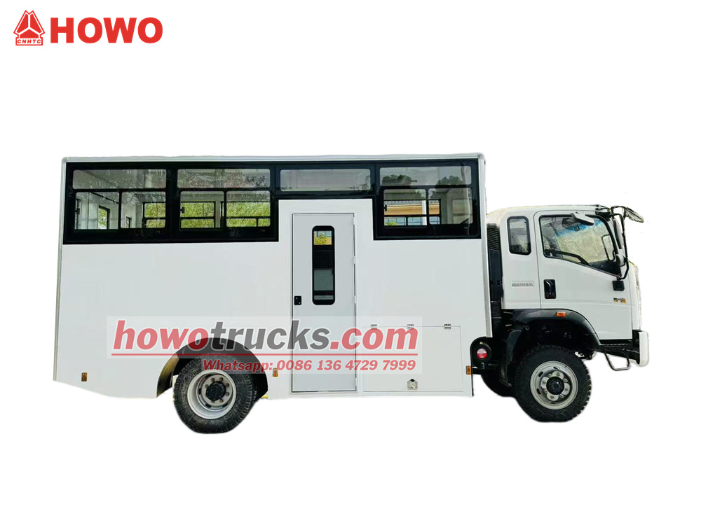 Il camion trasporto truppe HOWO 4x4 a trazione integrale è una versione modificata del telaio semi-integrale a trazione integrale HOWO a 1880 file, con un passo di 3360 mm, equipaggiato con un motore Weichai WP3NQ140E50 e un cambio WLY6G120. La parte superiore del cassone è un cassone con due file di sedili lunghi che possono ospitare 15 soldati. Sono presenti finestrini laterali su entrambi i lati del veicolo e un piccolo finestrino sul portellone posteriore. Il veicolo dispone inoltre di una porta singola sul lato destro e di una doppia porta sul portellone posteriore per facilitare la salita e la discesa. Il veicolo è dotato di aria condizionata.