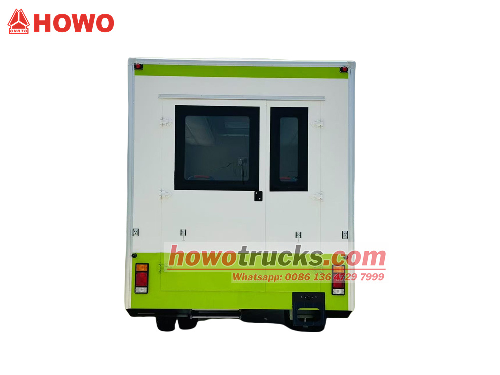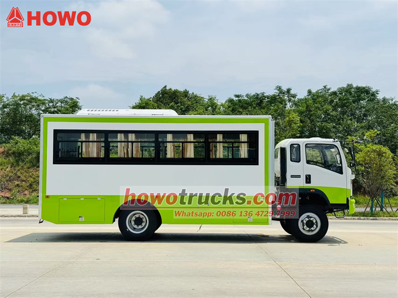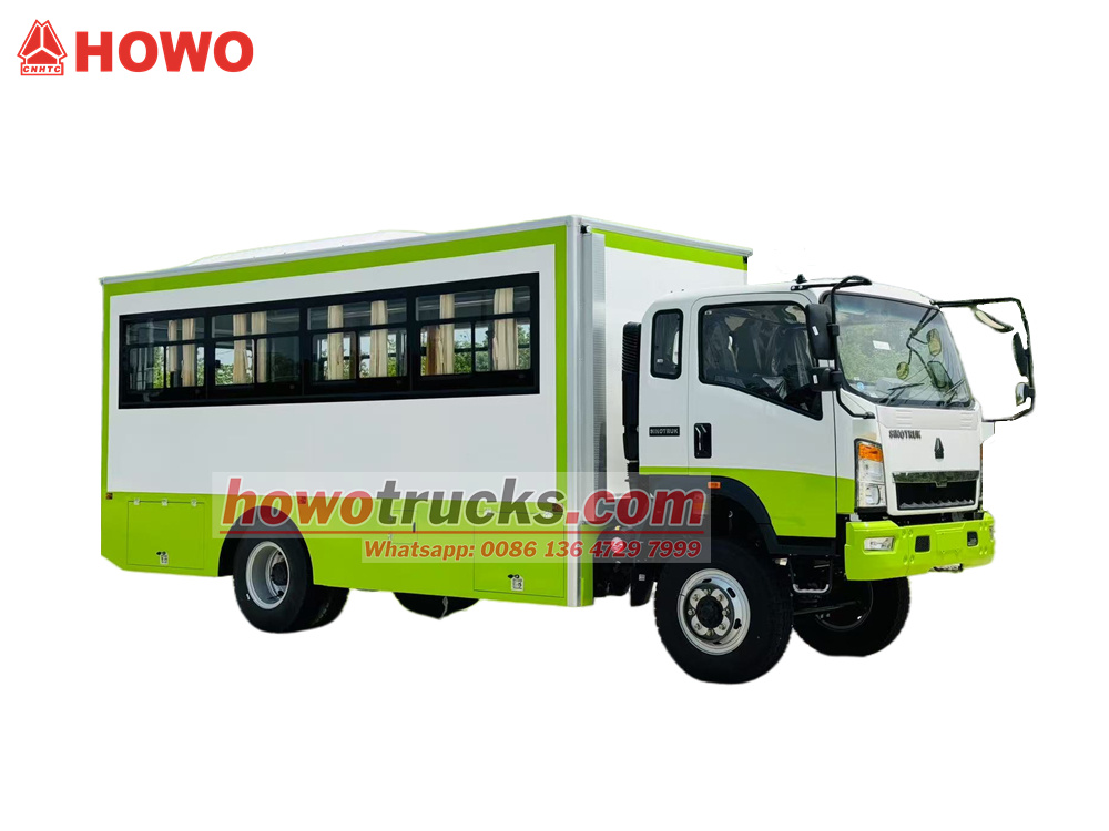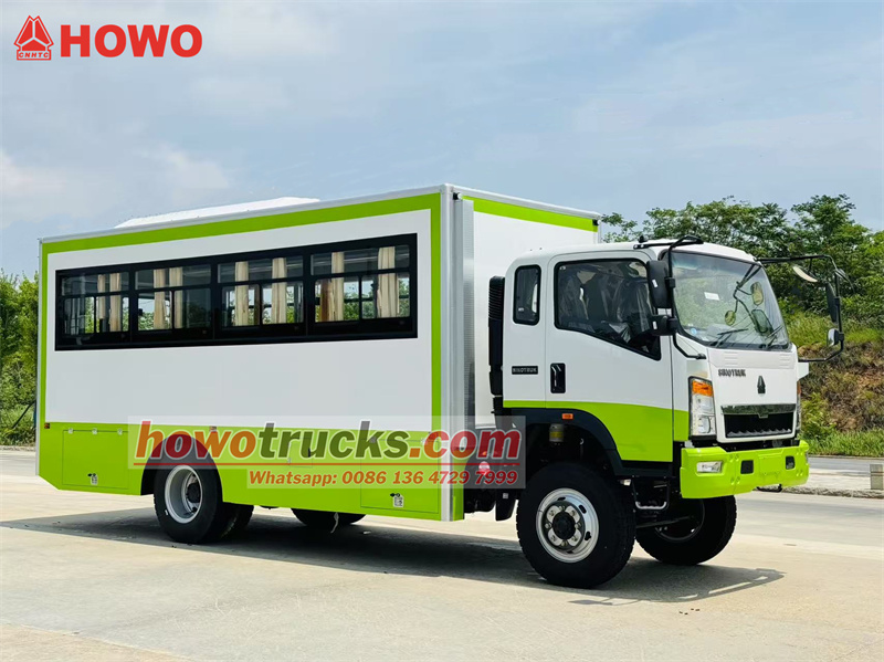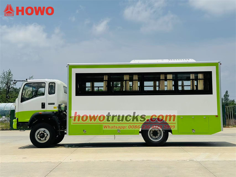 Il camion trasporto truppe HOWO 4x4 a trazione integrale è una versione modificata del telaio del camion leggero HOWO a trazione integrale, con cabina parziale a 2080 file, passo di 3800 mm ed è equipaggiato con un motore Yuchai YC4E140-33 e un cambio WLY6TS55. La parte superiore è un vano trasporto truppe con 22 posti a sedere, finestrini trasparenti e tende su entrambi i lati, e un portellone posteriore con finestrino per l'ingresso e l'uscita. Sopra i sedili sono installati portabagagli disposti su entrambi i lati del vano. Il vano è dotato di aria condizionata e illuminazione, e sui lati inferiori sono installate delle cassette degli attrezzi.