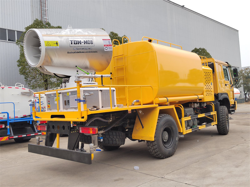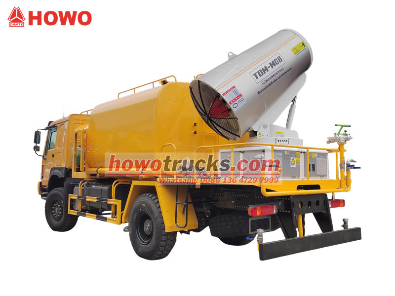 L'autocisterna HOWO 4×4 con cannone ad acqua è costruita sul telaio a trazione integrale HOWO, equipaggiata con un motore da 300 CV e un sistema di trazione 4×4, che garantisce prestazioni eccezionali su terreni complessi. Dotata di un cannone ad acqua a lunghissimo raggio di 80 metri con 90 ugelli, è in grado di nebulizzare una finissima nebbia d'acqua (20-200 μm) con una copertura massima di 20.000 m². Grazie al serbatoio d'acqua di grande capacità da 10.000 litri e al sistema di irrorazione ad alta pressione, svolge efficacemente compiti quali la riduzione della polvere stradale, la soppressione della polvere nei cantieri edili e l'irrorazione in agricoltura. È particolarmente adatta per il controllo della polvere in aree minerarie, porti, per la tutela ambientale urbana e altri settori.