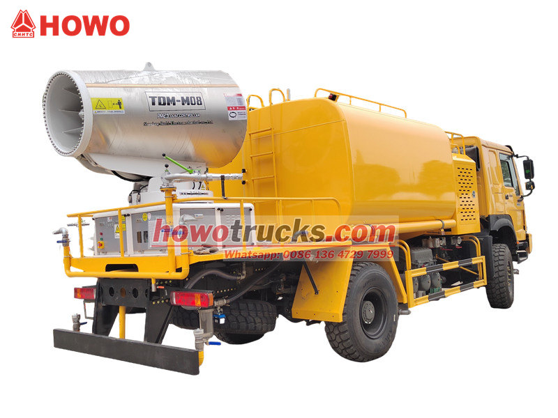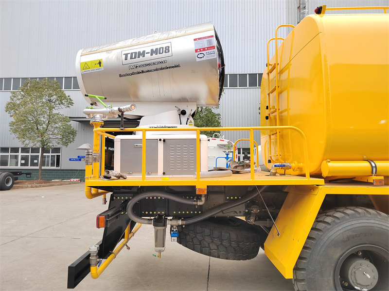 IL Camion cannone ad acqua HOWO 4×4 Integra un cannone ad acqua a lunghissimo raggio di 80 metri e un sistema di irrorazione ad alta pressione. Il cannone è dotato di 90 ugelli, in grado di nebulizzare una finissima nebbia d'acqua (20-200 μm) con una copertura fino a 20.000 m², sopprimendo efficacemente la polvere. Il serbatoio dell'acqua in acciaio al carbonio di grande capacità da 10.000 litri, abbinato a una pompa con portata di 60 m³/h, supporta applicazioni in diversi scenari, come la pulizia stradale, la riduzione della polvere stradale e l'irrorazione agricola. Grazie al controllo remoto wireless e al sistema di comando touchscreen, offre una gestione flessibile, rendendolo una soluzione completa per aree minerarie, porti, emergenze urbane e altri settori.
