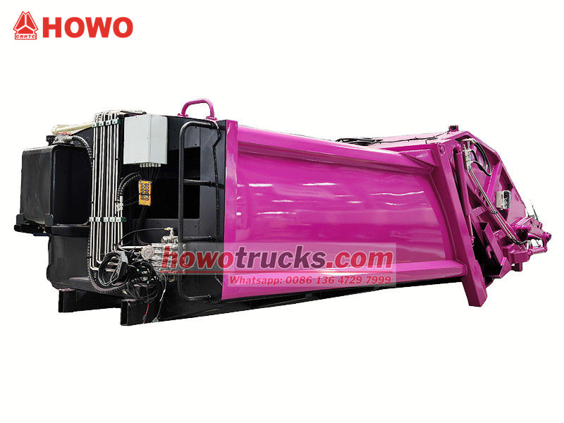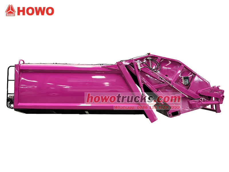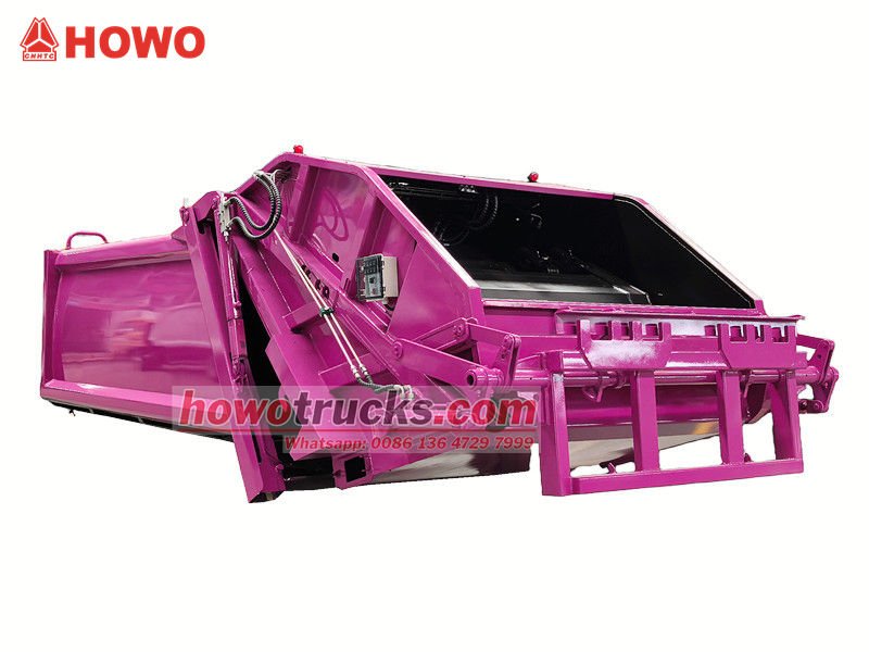 PLC control systemLa sovrastruttura del veicolo compattatore per rifiuti Howo 8 CBM è composta da un cassonetto, un caricatore, una lama di spinta, una piastra di compressione e un sistema idraulico. Il cassonetto è saldato con lamiere di acciaio ad alta resistenza e anticorrosione, creando una tenuta ermetica per impedire la fuoriuscita di acque reflue.