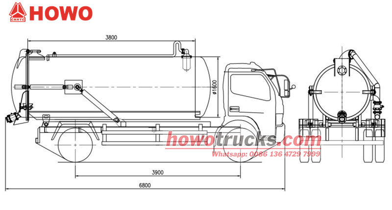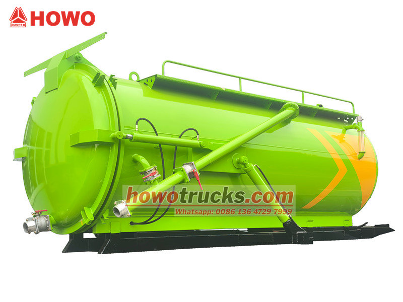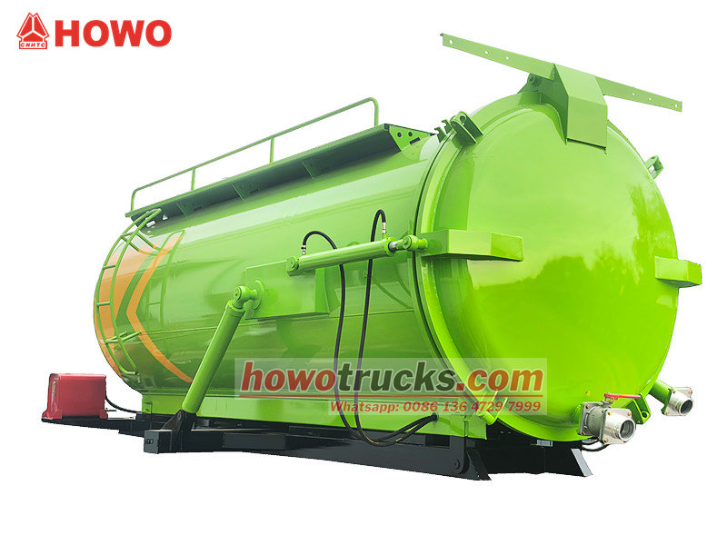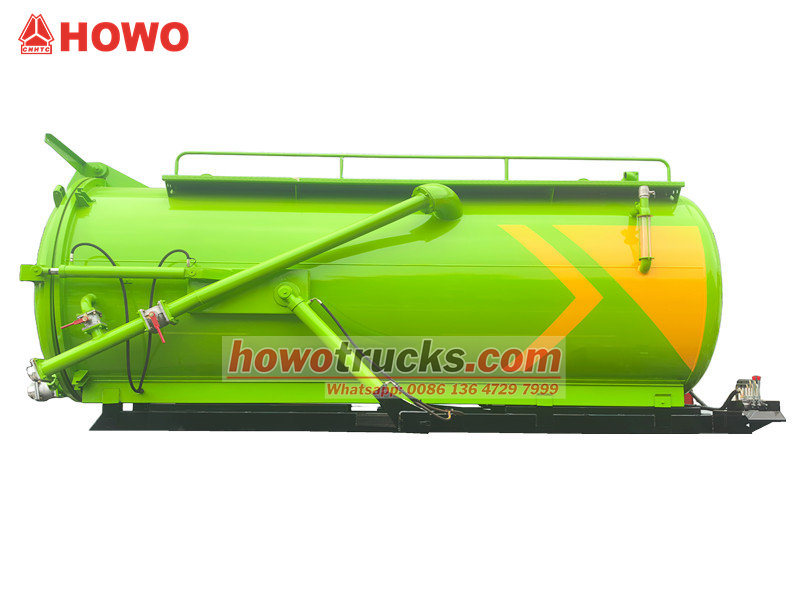 Optional MORO or Jurop pumpIl corpo dell'autocisterna per aspirazione di fosse settiche Howo da 8 m³ è composto principalmente da un serbatoio di aspirazione sottovuoto, una pompa a vuoto, una tubazione di aspirazione, un indicatore di livello e un sistema di scarico. È in grado di aspirare, immagazzinare, trasportare e scaricare liquami e fanghi. Il suo sistema di aspirazione vanta una forte potenza di aspirazione, che pulisce efficacemente i sedimenti da fosse settiche e pozzi di depurazione, prevenendo l'inquinamento secondario.