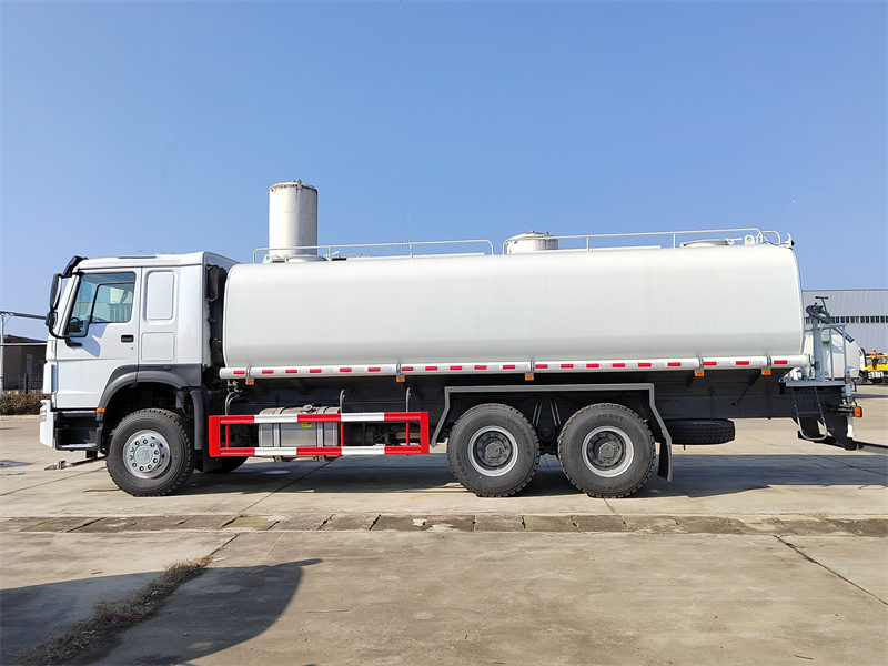 Grazie al serbatoio di grandi dimensioni e ai materiali di alta qualità, l'autocisterna Howo vanta una capacità di oltre 20.000 litri, soddisfacendo le esigenze di operazioni di irrorazione idrica su larga scala, riducendo i rifornimenti frequenti e migliorando l'efficienza operativa. Il serbatoio dell'acqua è realizzato in acciaio al carbonio di alta qualità (Q235) e ha una forma ovale. Presenta i vantaggi di elevata resistenza e resistenza alla corrosione, garantendo una lunga durata del serbatoio.