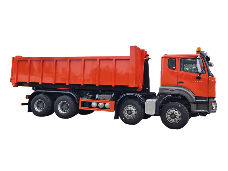 HW76 cabin, 6×6, 25 ton hook arm is optionalL'autocisterna HOWO da 20 tonnellate con sistema di sollevamento a gancio è un veicolo di grandi dimensioni per la raccolta dei rifiuti, basato su un telaio di autocarro per carichi pesanti e dotato di un sistema idraulico a braccio con gancio che consente il carico, lo scarico e lo svuotamento automatico e indipendente dei contenitori per i rifiuti. Costruito sul telaio HOWO NX 8×4 e alimentato da un motore Weichai da 400 cavalli, ha una massa totale di 31.000 kg ed è progettato per movimentare contenitori per rifiuti da 15-20 metri cubi. Il sistema a braccio con gancio da 20 tonnellate, controllato tramite meccanismi idraulici, completa un singolo ciclo operativo in meno di 45 secondi, dimostrando significativi vantaggi in termini di efficienza nel trasferimento dei rifiuti e negli scenari di trasporto ciclico di più contenitori.