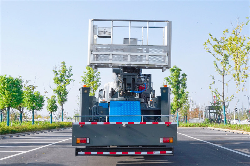 Il suo esclusivo design di stabilizzatore idraulico a H ha una distanza di espansione orizzontale e verticale di 8.600 mm ed è dotato di un meccanismo di bloccaggio idraulico bidirezionale per garantire la stabilità durante il funzionamento. Il camion è inoltre dotato di un doppio sistema operativo di controllo manuale e wireless remoto, una piattaforma con carico nominale di 250 kg, rotazione idraulica a 360° e molteplici dispositivi di protezione di sicurezza integrati, come il limite automatico fuori dai limiti, il dispositivo di arresto di emergenza e la protezione contro le perdite.