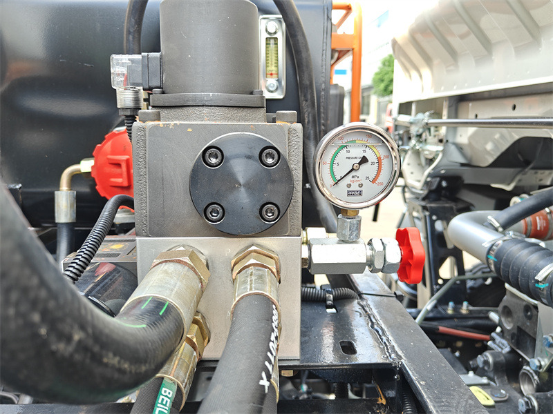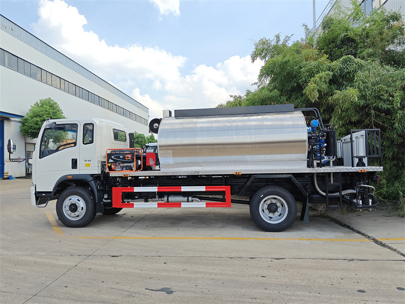 L'autocisterna per asfalto Howo 4x2 da 5 m³ è una versione modificata del telaio Howo 2080 a cabina singola, con passo di 3800 mm. È equipaggiata con un motore YN4102QBZL e un cambio WLY6TS55C. La sovrastruttura è composta da un serbatoio per asfalto da 5 metri cubi, una pompa di calore per asfalto smart RY40-25-160 e 28 ugelli per asfalto posteriori, con una larghezza di spruzzatura di 4 metri e una portata di spruzzatura di 0,20-1,5 l/min.㎡È dotata di un bruciatore Riello G10 di importazione italiana con riscaldamento automatico a olio combustibile, controllo computerizzato intelligente in cabina e gruppo elettrogeno ausiliario.