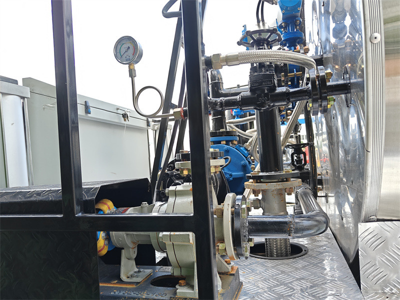 •Pompa per asfalto: Pompa per olio caldo intelligente raffreddata ad aria RY40-25-160, portata 10 m³³/h, 2900 giri/min, garantisce un'erogazione stabile di asfalto ad alta temperatura; il corpo della pompa è dotato di una funzione di riscaldamento integrata per prevenire la solidificazione dell'asfalto.