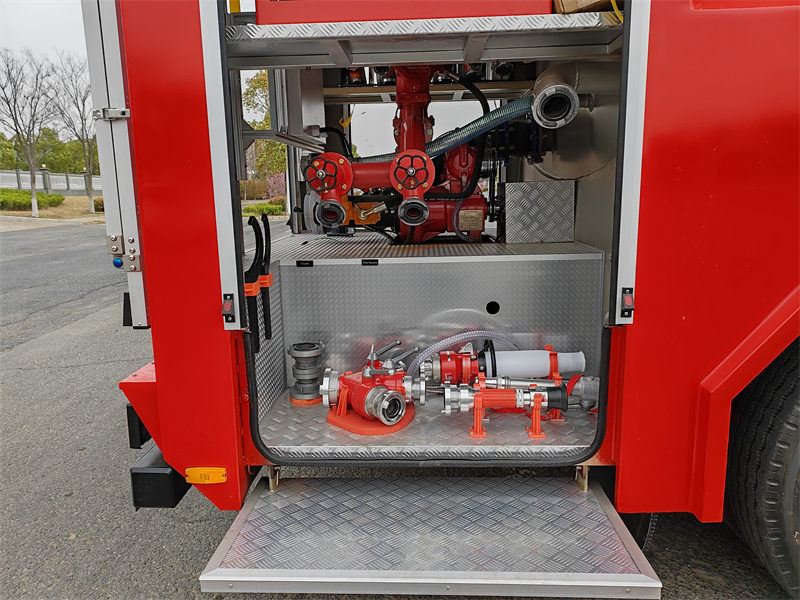 La pompa antincendio è azionata dalla presa di forza, con un intervallo di pressione di 1,6-2,5 MPa e una portata di 80-120 kg/s. Il cannone antincendio ha una velocità di spruzzo di 60-100 kg/s e una gittata di 40-60 metri, che può rispondere efficacemente a varie situazioni di incendio.Autopompa Howo È inoltre equipaggiato con una serie completa di attrezzature standard per il soccorso antincendio, come pale, piedi di porco, asce e strumenti da taglio; scale e fari sono opzionali.