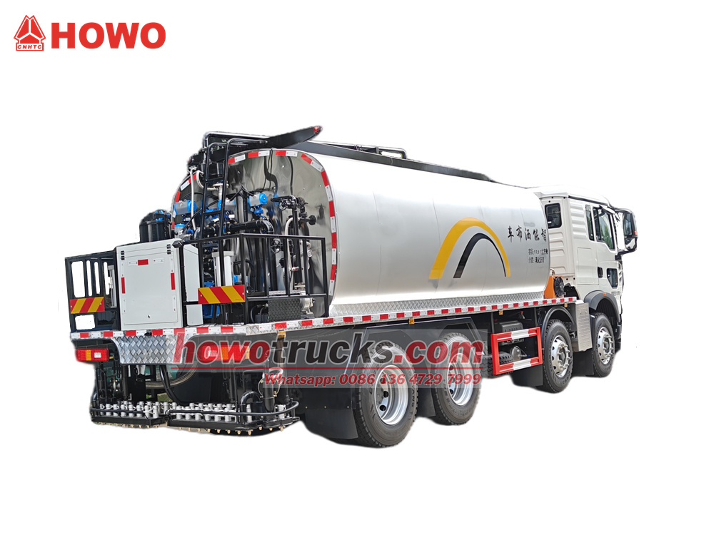 Lo spandiconcime HOWO 8x4 da 18 metri cubi è una versione modificata del telaio con cabina HOWO TX-W 8x4. Ha un passo di 1800+3800+1350 mm, è equipaggiato con un motore MC07H.35-60 e un cambio HW13709XSTC2. La parte superiore è costituita da una cisterna per asfalto da 18 metri cubi, caricabile con asfalto emulsionato e asfalto caldo. È dotato di una pompa dell'olio caldo raffreddata ad aria RY40-25-160 e di 36 ugelli per asfalto nella parte posteriore. La larghezza di spruzzatura è di 6 m e il volume di spruzzatura è compreso tra 0,2 e 3 kg/m³.². Dispone inoltre di un bruciatore diesel importato (potere calorifico: 10×10⁴kcal/h), riscaldamento automatico a olio termico e un sistema di controllo computerizzato intelligente in cabina (Siemens, Germania).