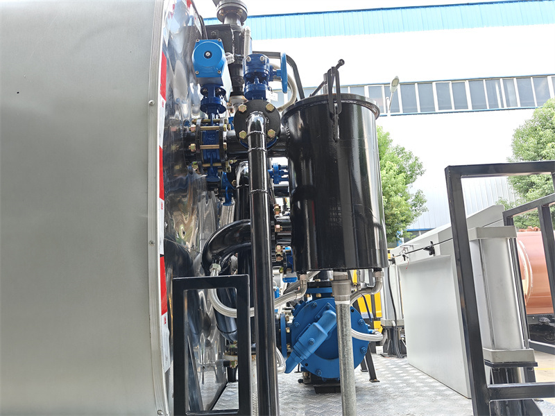 2.Serbatoio grande: La cisterna per asfalto da 18 metri cubi è compatibile sia con asfalto emulsionato che con asfalto caldo, garantendo isolamento termico e durata nel tempo.