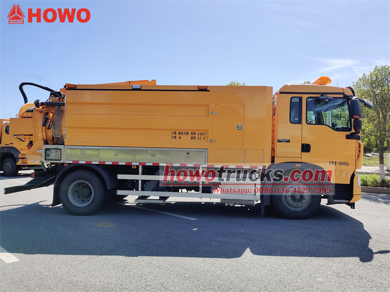 L'autocarro dragante combinato HOWO 4x2 da 11 m³ è una versione modificata del telaio semirimorchio HOWO TX 2280. Ha un passo di 4500 mm ed è equipaggiato con un motore Sinotruk MC07.31-60 e un cambio a 6 marce. È dotato di una cisterna per acque reflue da 6,7 m³ e di una cisterna per acqua pulita da 4,2 m³ realizzate in acciaio al carbonio di 5 mm di spessore. Su entrambi i lati della cisterna sono presenti delle cassette porta attrezzi, una delle quali ospita la centralina di controllo, l'avvolgitore della sponda posteriore, la valvola di scarico, la scaletta, il tubo di ispezione, ecc. È equipaggiato con una pompa per vuoto Jurop PVT400 e una pompa di pulizia ad alta pressione 3N2-SZ.