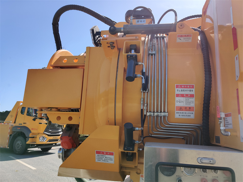 1. Sistema di aspirazione sottovuoto: Una pompa per vuoto Jurop PVT400 genera una pressione negativa che viene aspirata in un serbatoio in acciaio al carbonio da 6,7 metri cubi tramite un braccio di aspirazione. Una valvola di troppo pieno è installata sulla parte superiore del serbatoio, attivando automaticamente un allarme di troppo pieno e chiudendo la porta di aspirazione per impedire il riflusso. Il braccio di aspirazione è regolabile idraulicamente in altezza, profondità e rotazione per adattarsi a diverse posizioni operative.