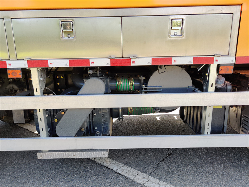 11500IL Autocarri aspiratori industriali per liquidi HOWO Si tratta di veicoli altamente efficienti, progettati specificamente per la manutenzione delle condotte comunali. Dotati di un potente motore Sinotruk MC07.31-60 e di una trasmissione a 6 velocità, utilizzano un sistema combinato di pulizia ad alta pressione e aspirazione, integrando le funzioni di aspirazione, disostruzione e pulizia. Il sistema di pulizia ad alta pressione utilizza una pompa 3N2-SZ per pressurizzare l'acqua pulita e rimuovere macchie e ostruzioni dalle fognature, mentre il sistema di aspirazione si avvale di una pompa Jurop PVT400 per estrarre rapidamente i fanghi attraverso il braccio di aspirazione.