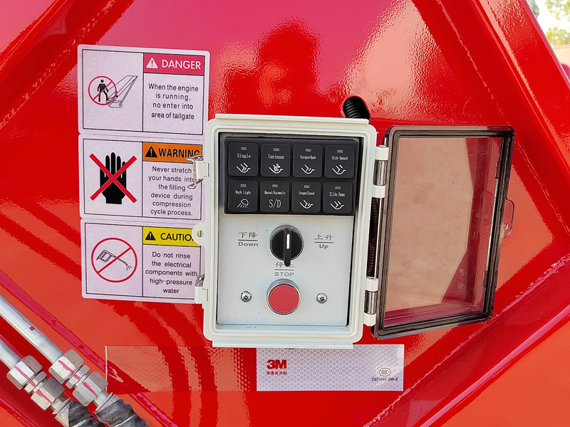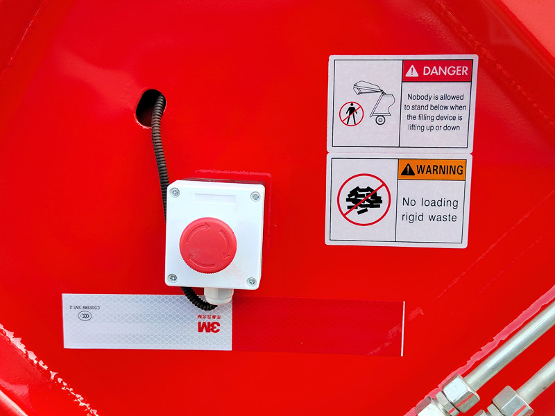 ►Uno speciale pulsante di freno di emergenza consente al meccanismo di compattazione dei rifiuti di arrestarsi in qualsiasi stato o posizione, garantendo la sicurezza del personale e delle attrezzature.